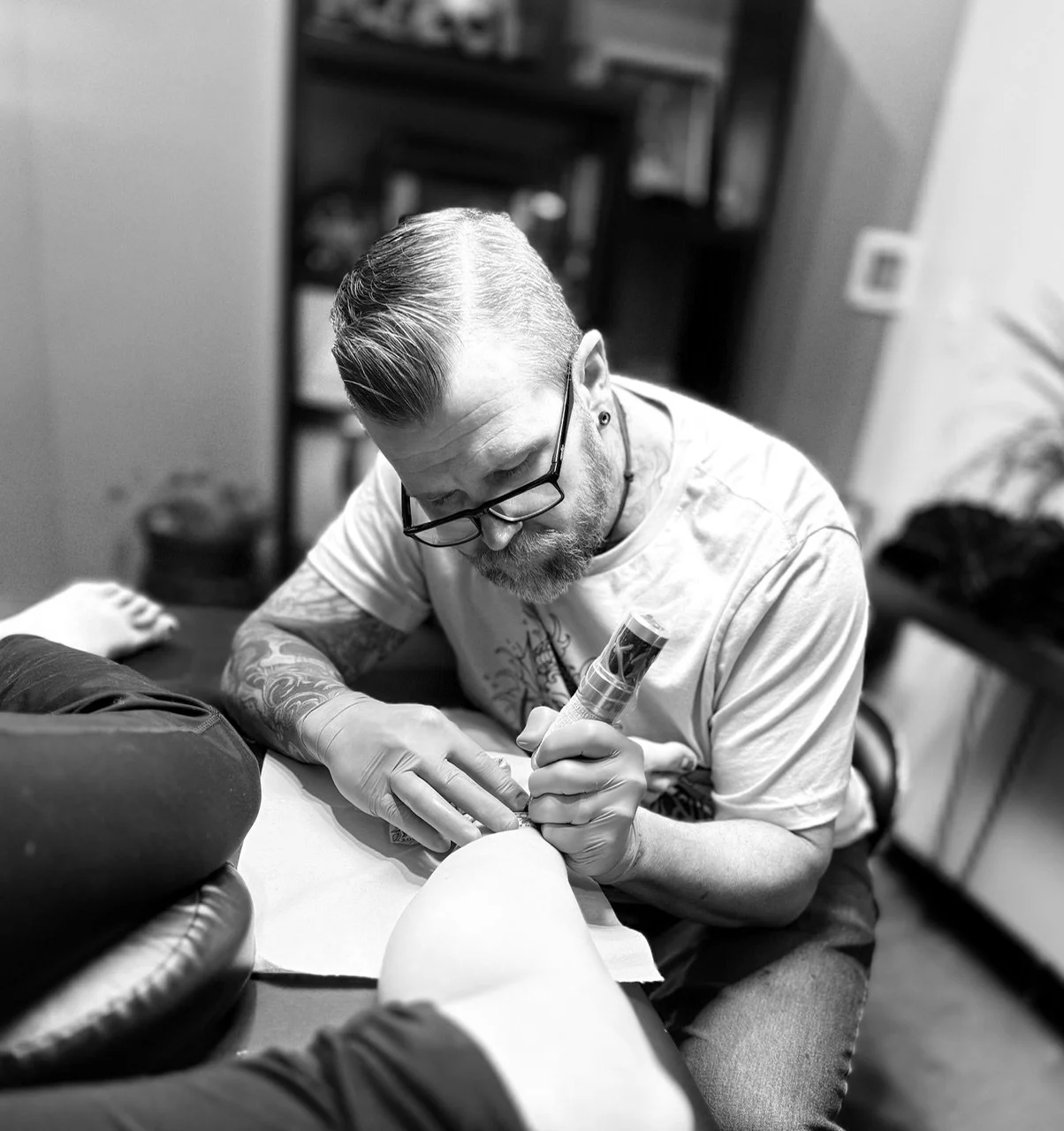 Good to know: Chris currently lives in Lafayette, is married with two kids and two bulldogs. Loves to tattoo and make things. Contact the shop to get on his schedule!
